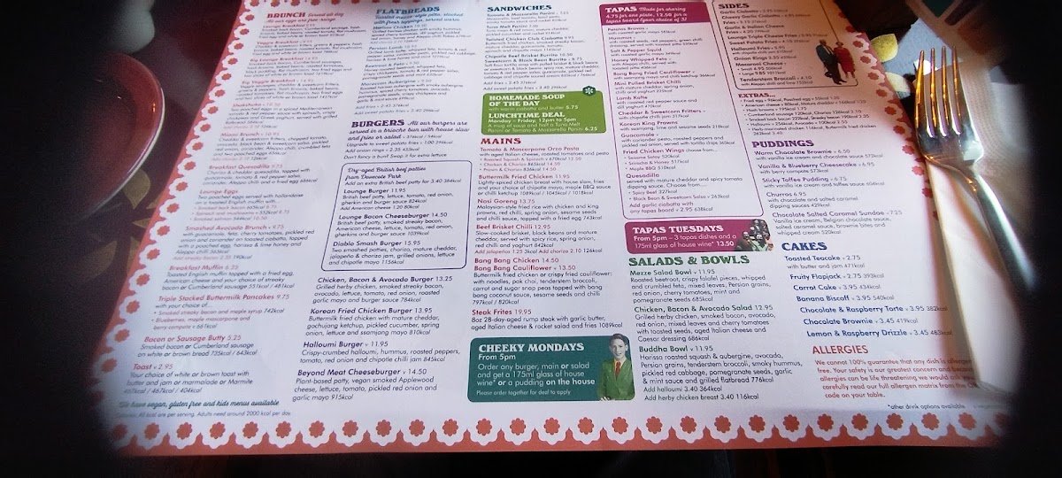 Start your day with a warming breakfast muffin or a traditional English breakfast tea paired with options like the GF Veggie Breakfast or the hearty GF Lounge Breakfast. As the day goes on, vibrant dishes such as lamb flatbread, harissa chicken flatbread, and the twisted club chicken ciabatta make for enjoyable midday or evening meals. Lighter, plant-based options like bangbang cauliflower noodles or kimchi fried rice also fit well with the inviting, informal setting.